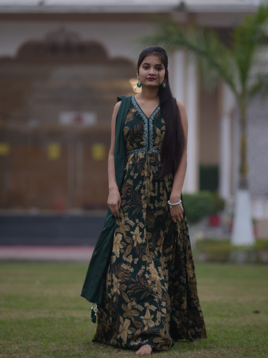The flowing Anarkali silhouette enhances your graceful look while ensuring absolute comfort throughout the day. Crafted from premium-quality fabric, it offers a soft, smooth, and luxurious feel against the skin.